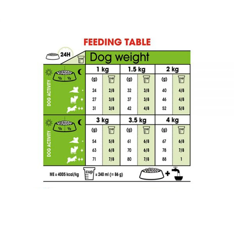 سگ های مینیاتوری بر اساس جثه خود نیازهای غذایی خاصی دارند. دندان های سگ های کوچک بسیار نزدیک به هم هستند و باقی مانده مواد غذایی به آسانی بین دندان ها جمع میشود که شرایطی ایده آل برای ایجاد جرم دندان بوجود می آورد! علاوه بر این، سگ های کوچک از مواد غذایی که سیستم گوارشی حساس آنها را کمک کند بهره می گیرند. Royal Canin X-Small Adult دارای یک دستور غذایی مغذی خاص و کیبل یا دانه های غذایی کوچک است که باعث افزایش طعم و مزه و خوش خوراکی برای سگ کوچک ما میباشد.