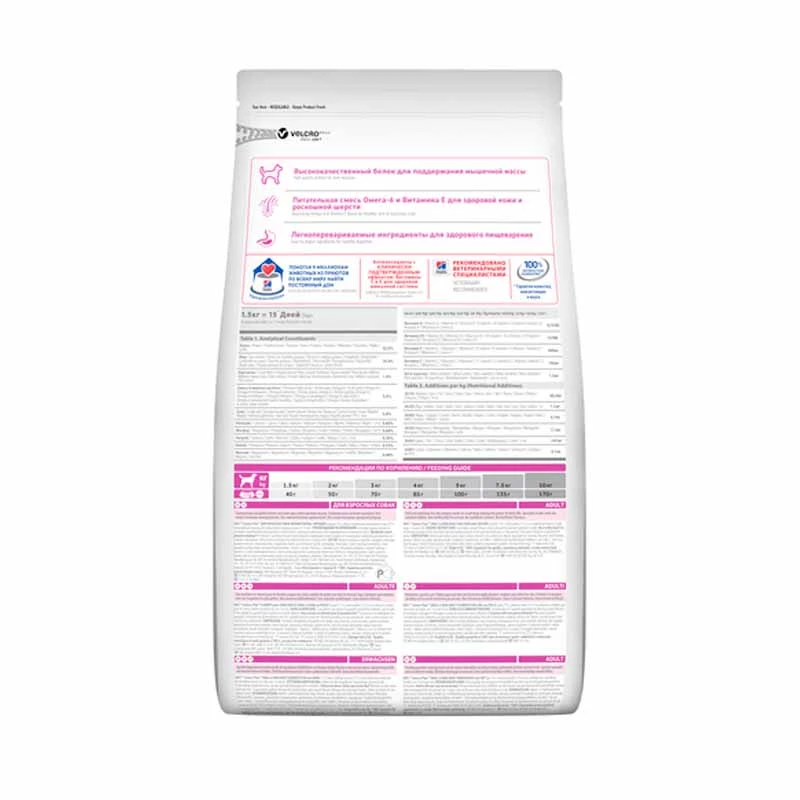 این محصول با دانه های ریز تولید شده تا سگ های بالغ نژاد کوچک و خیلی کوچک به سادگی بتوانند از آن استفاده کنند. قابلیت هضم بالایی دارد و دستگاه گوارش حساس این سگ ها، به خوبی می تواند آن را هضم و جذب کند. این غذا حاوی مقادیر مناسبی از امگا 6 و ویتامین E است که موجب تقویت و شادابی پوست و مو خواهند شد.