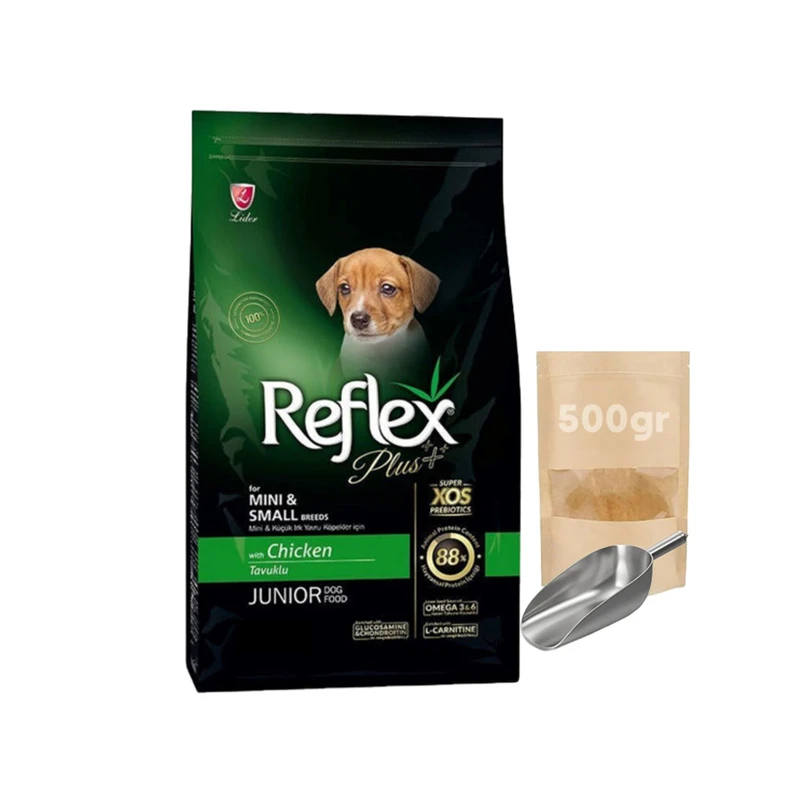 غذا خشک سگ نابالغ رفلکس پلاس مدل جونیور MINI & SMALL BREEDS فله طعم مرغ وزن 500 گرم